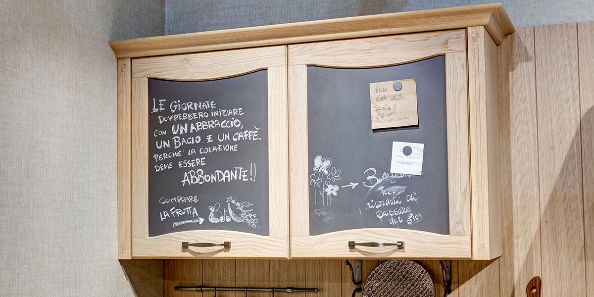 Con AUREA scoprirete la voglia di accendere i fornelli o di sfornare dolci e biscotti che inonderanno il vostro spazio cucina con profumi delicati, perché AUREA vi dà la giusta ispirazione, indipendentemente dai vostri stili di vita. Originali ed interessanti sono l’anta con finitura lavagna come anche la cappa su cui si può scrivere e il gruppo tavolo, sedie e panca realizzati su misura per questo innovativo modello.