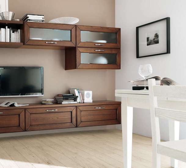 Il modello Claudia con la sua linea solida, robusta, elegante, moderna e tradizionale e le ante in legno massello su cinque calde tonalità, saprà sorprenderti ogni giorno.