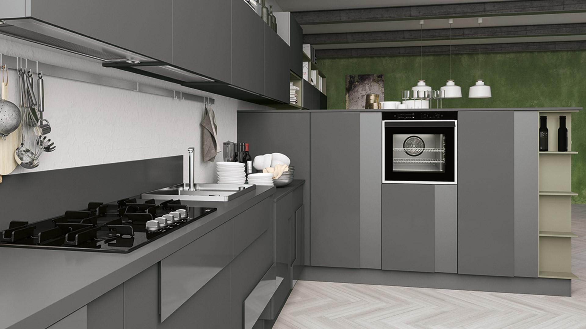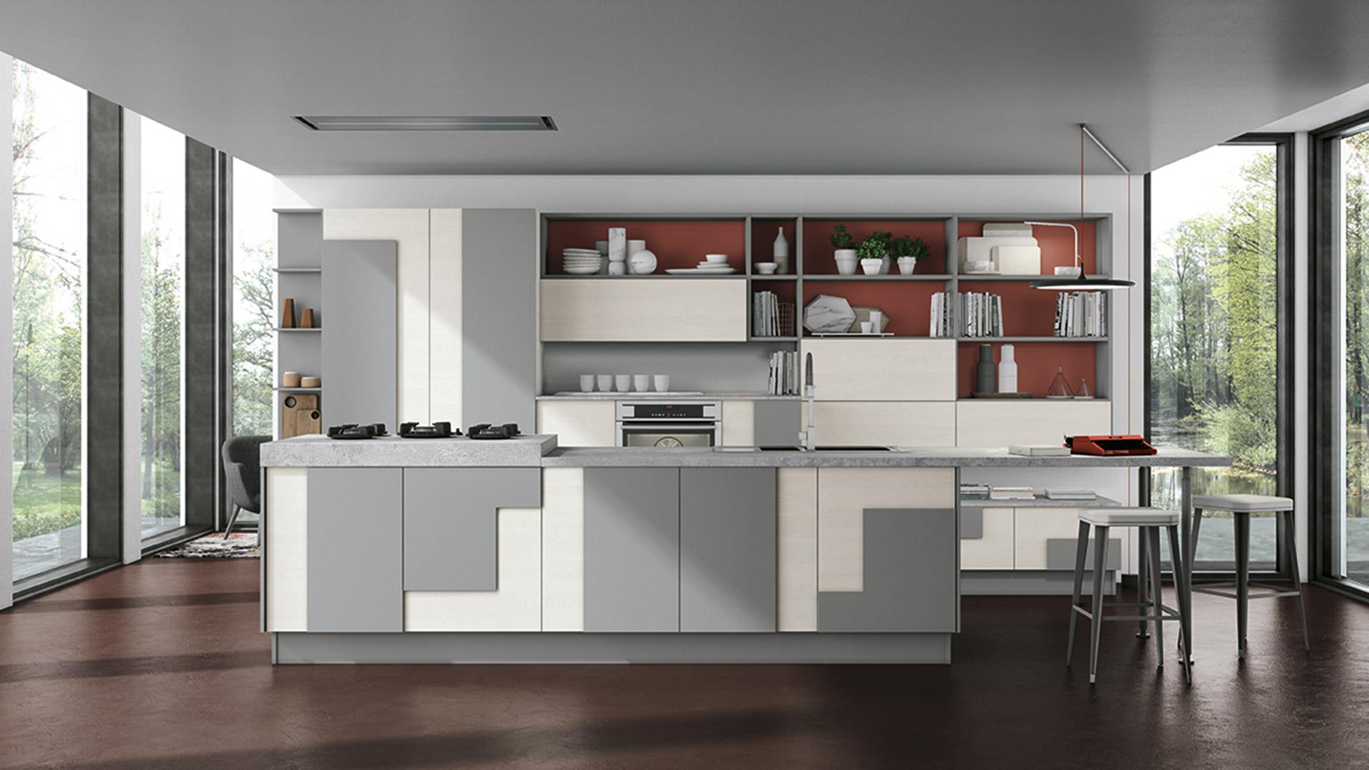 La progettazione del programma Creativa ti permette di personalizzare il tuo spazio abitativo in modo unico. Geometrie in movimento che rendono esclusiva la tua cucina.
