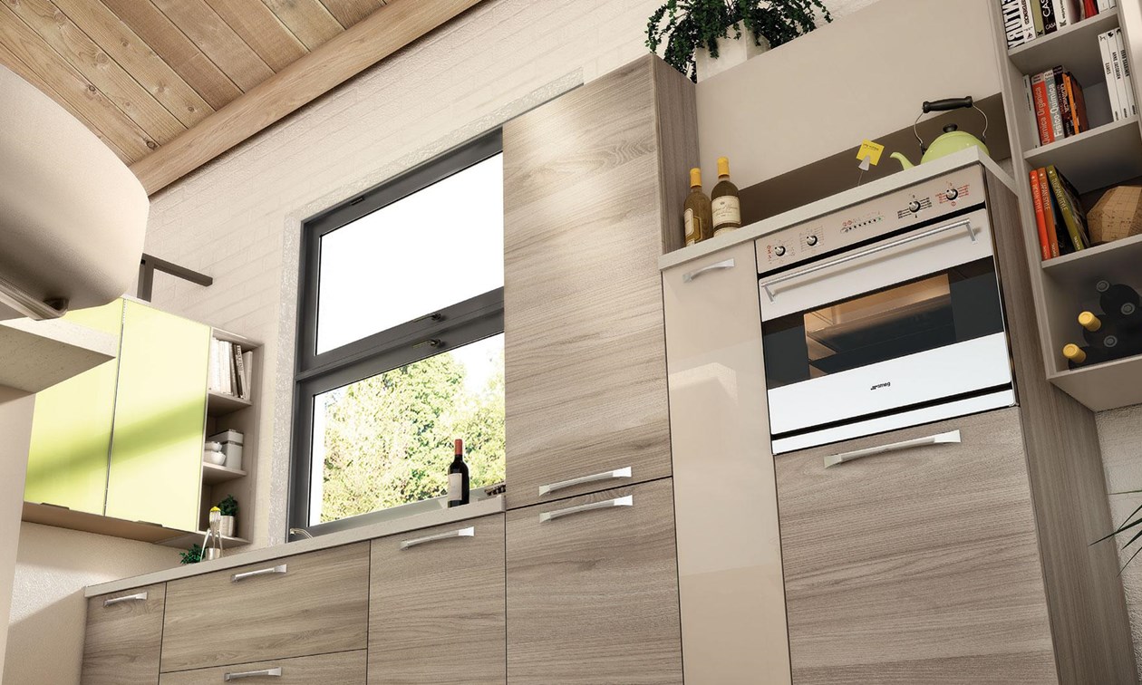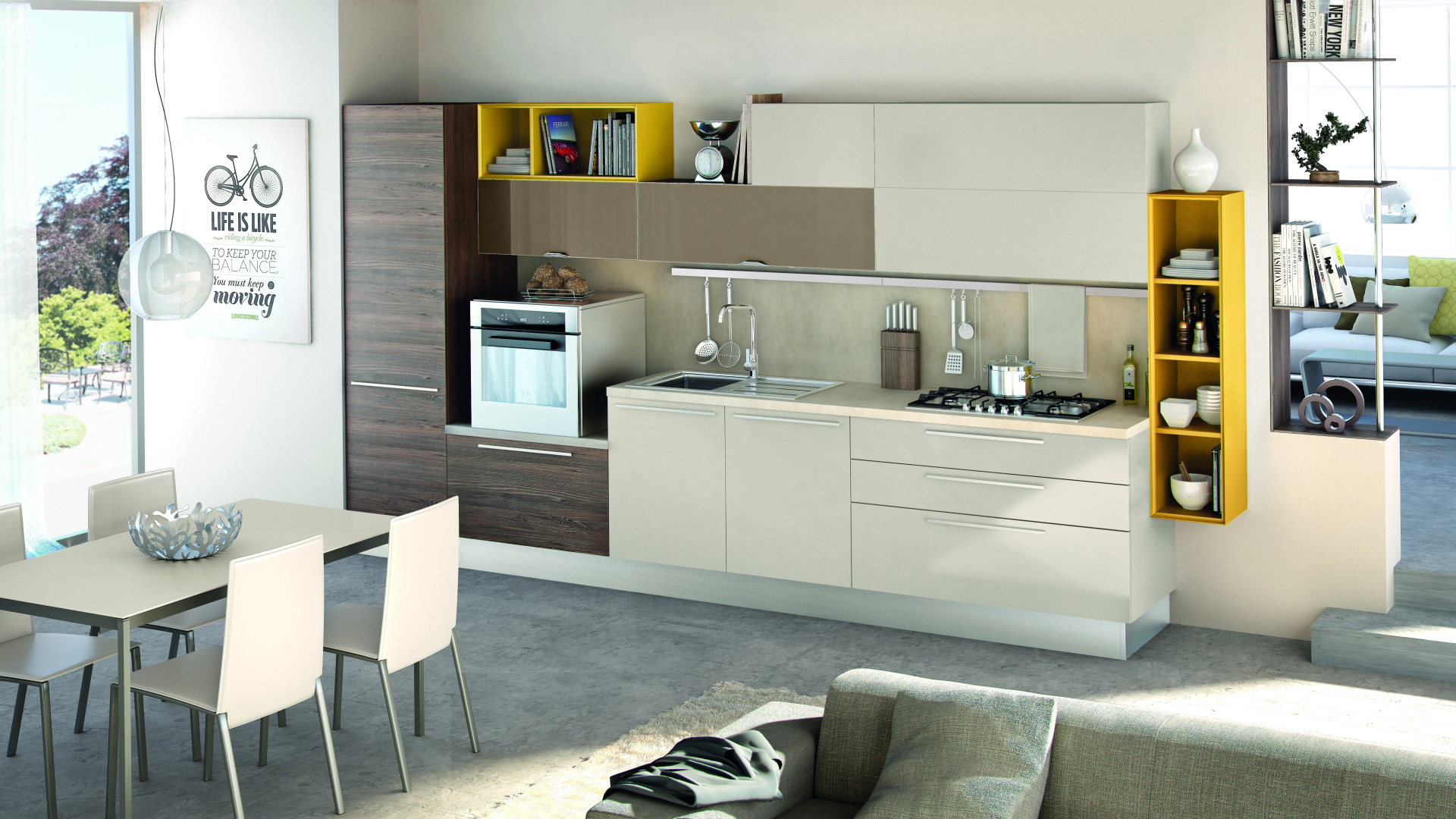 Design moderno, accessori pratici, equilibrio dello stile fanno di Noemi un modello che si adatta a tutte le esigenze estetiche e funzionali del nuovo modo di vivere la cucina.