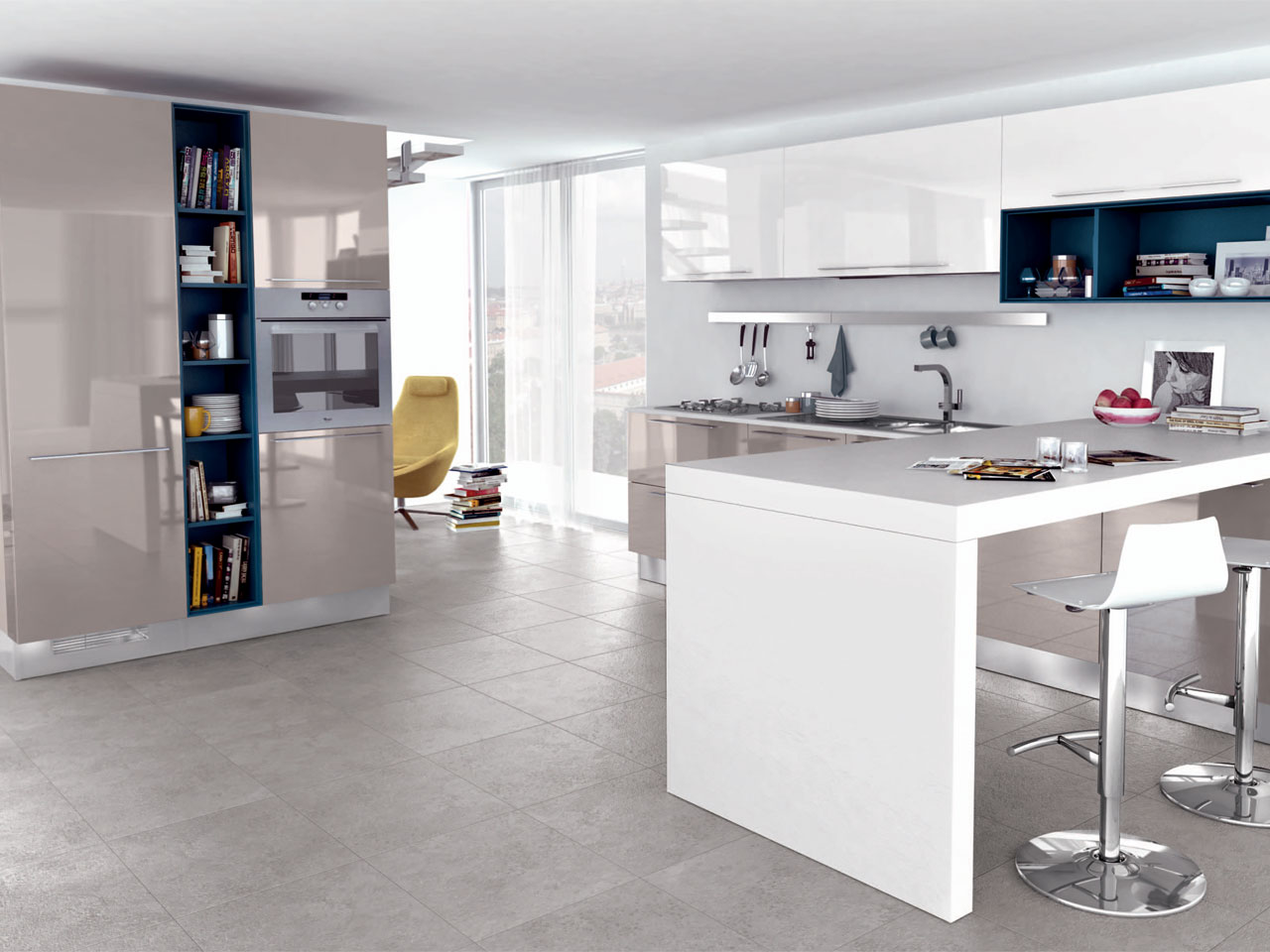 Design moderno, accessori pratici, equilibrio dello stile fanno di Noemi un modello che si adatta a tutte le esigenze estetiche e funzionali del nuovo modo di vivere la cucina.