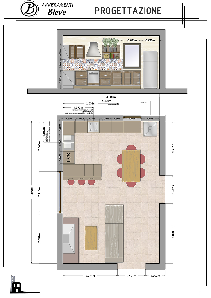 Progettazione di un ambiente cucina-pranzo-living per un’abitazione domestica nel cuore della campagna.